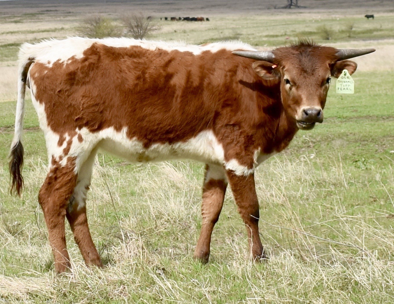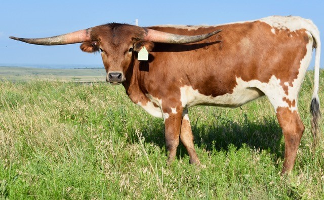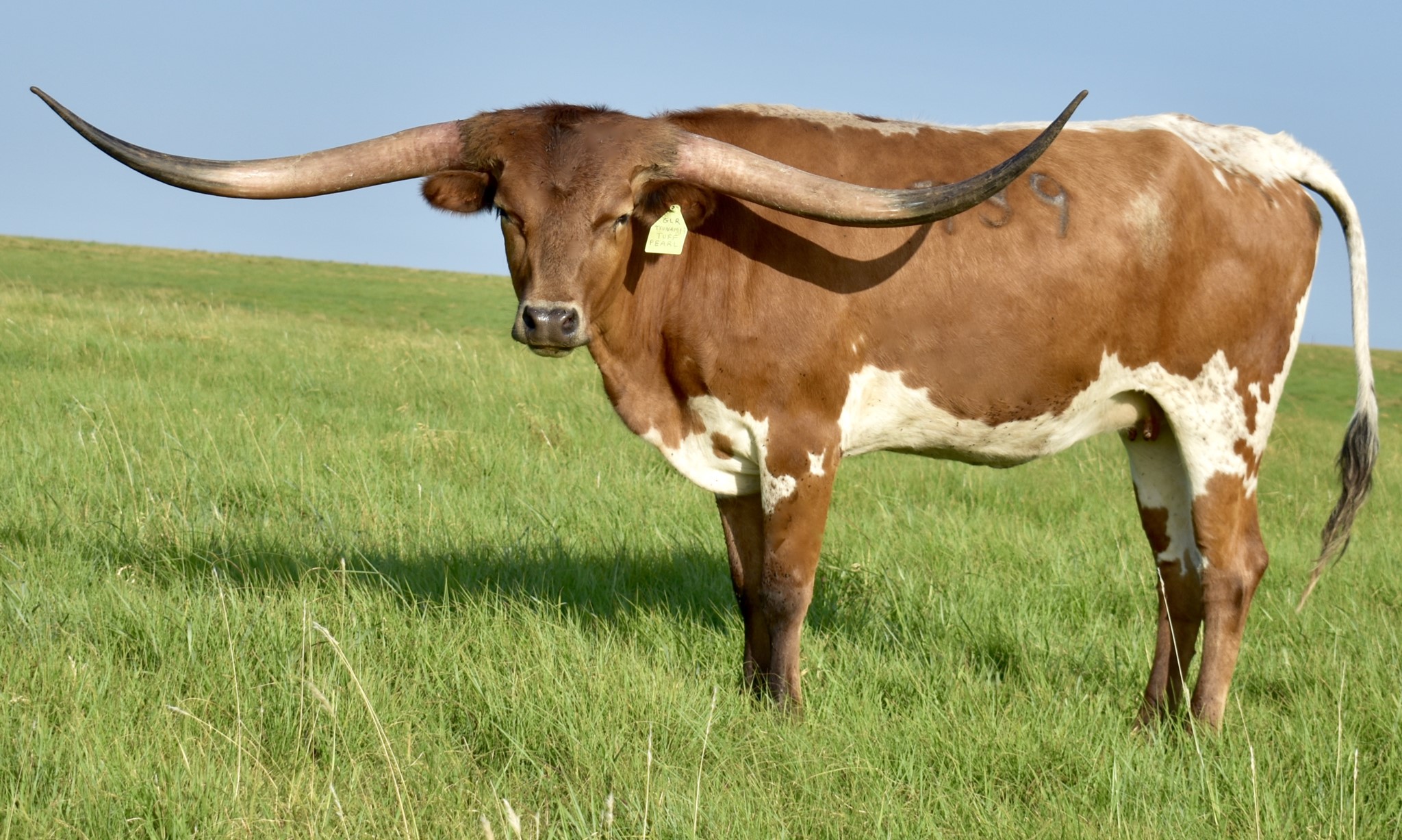 HORN PEDIGREE: 3 ANCESTORS OVER 90" TTT; 8 OVER 80" TTT----80'' TTT @ 38 MONTHS; AI'D TO HANGIN' TUFF - 2021--- BULL CALF-- HERD SIRE CURRENTLY -SHERIAN GLR----2022-- NICE HEIFER BY TEXAS TUFF GLR