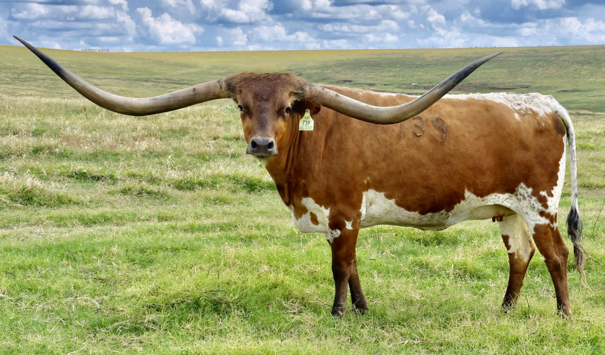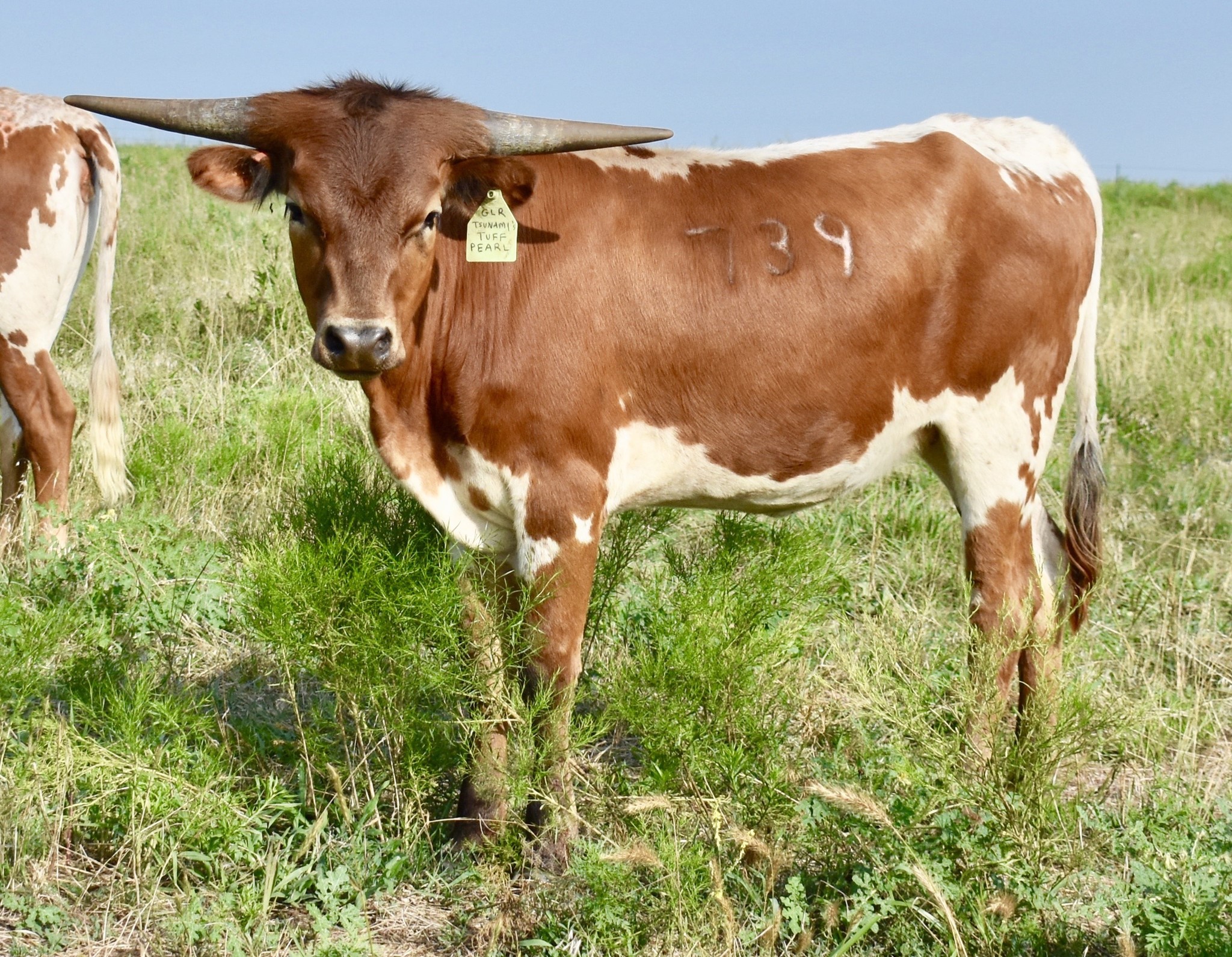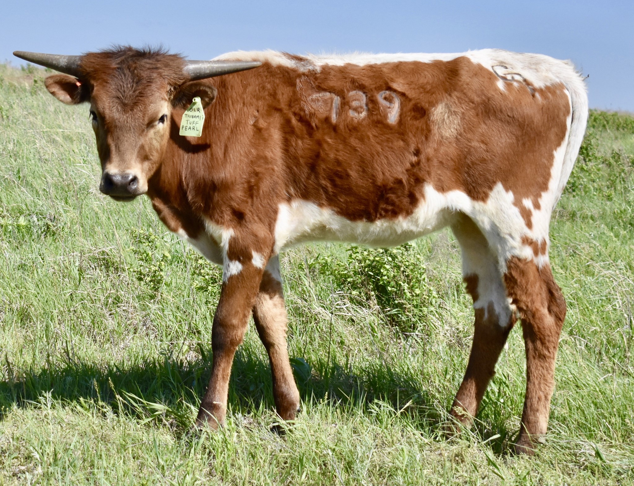 HORN PEDIGREE: 3 ANCESTORS OVER 90" TTT; 8 OVER 80" TTT----80'' TTT @ 38 MONTHS; AI'D TO HANGIN' TUFF - 2021--- BULL CALF-- HERD SIRE CURRENTLY -SHERIAN GLR----2022-- NICE HEIFER BY TEXAS TUFF GLR